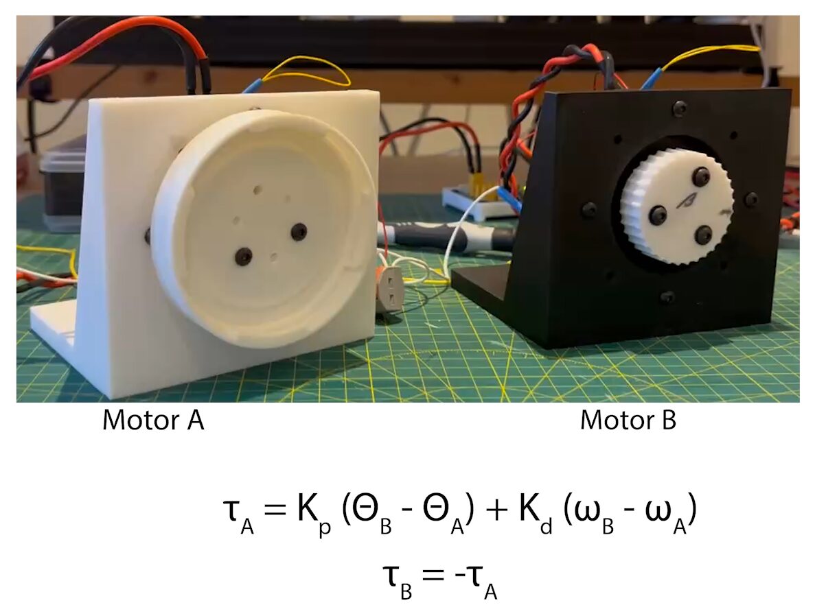 Torque_motorA = Kp * (Position_motorB - Position_motorA) + Kd * (Speed_motorB - Speed_motorA);